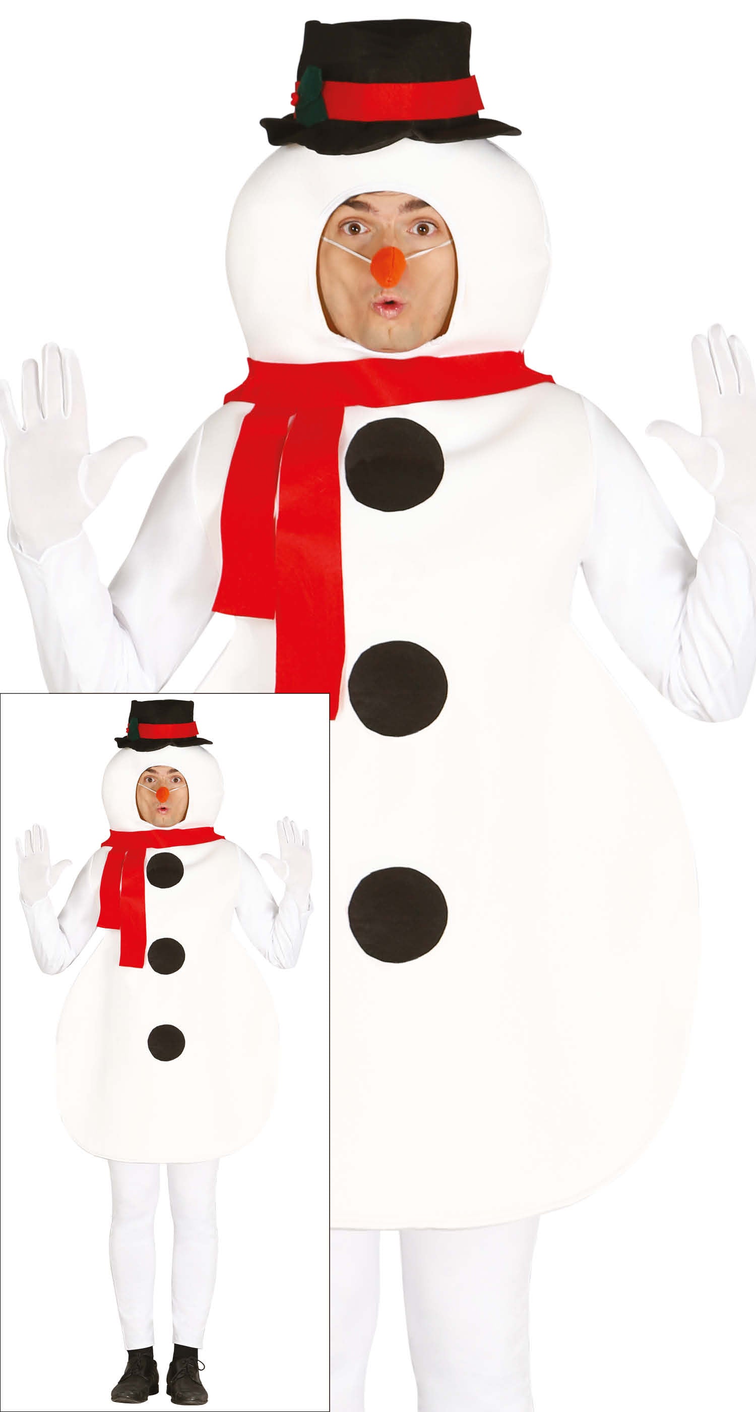 Ce déguisement complet comprend tous les accessoires indispensables pour un look emblématique : le nez de bonhomme de neige, l’écharpe assortie et le chapeau traditionnel. Facile à enfiler et parfaitement adapté aux animations, il attire immédiatement les regards et met tout le monde dans l’ambiance de Noël.