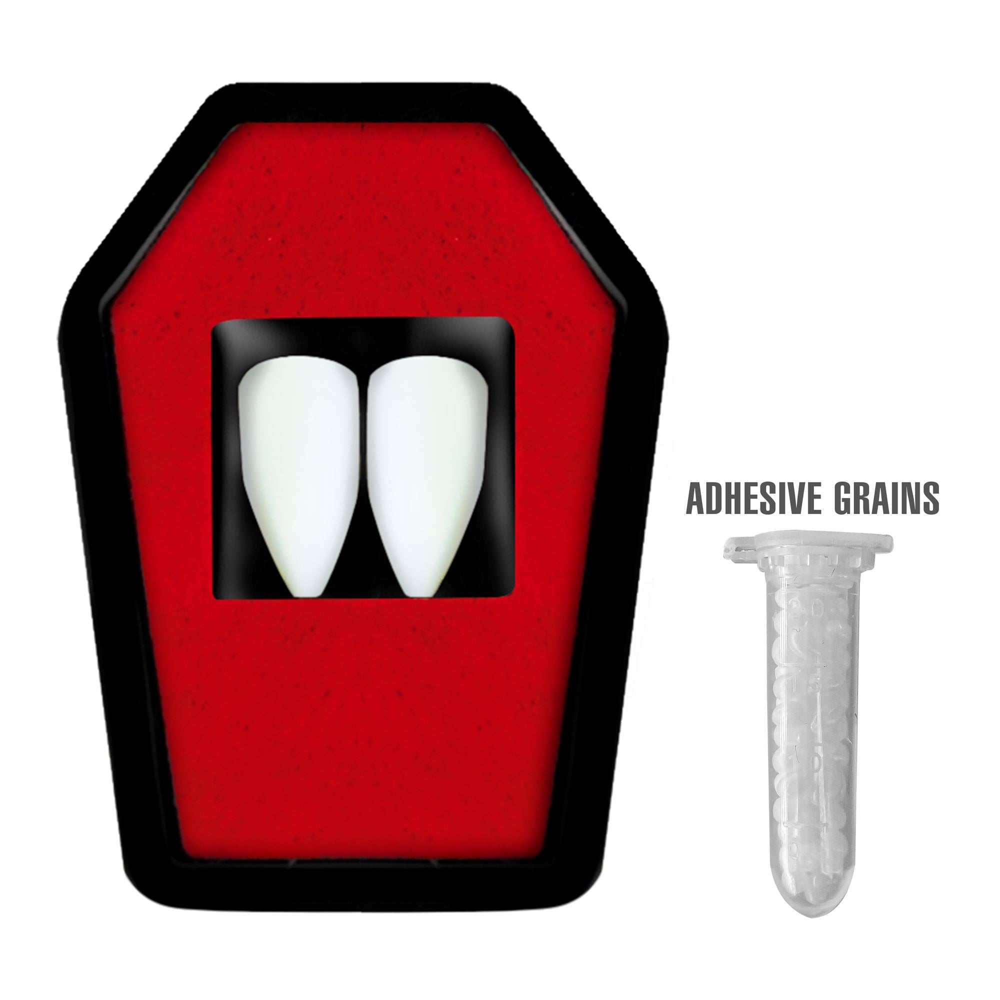 Transformez-vous en véritable créature de la nuit avec ce kit de dents de vampire professionnelles ! Ce coffret en forme de cercueil contient une paire de canines réalistes accompagnées d’une colle thermoplastique pour une fixation sûre et confortable.
