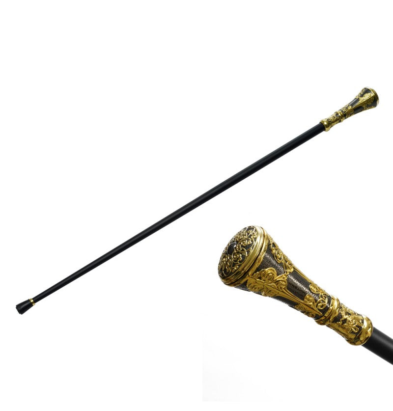 Apportez une touche royale à votre déguisement avec cette canne baroque de luxe en métal doré et bois, longue de 93 cm. Son design finement travaillé présente des ornements baroques sophistiqués sur la poignée et le pommeau, révélant un style ancien et majestueux. Alliant robustesse du métal et chaleur du bois, cette canne est l’accessoire parfait pour compléter un costume d’aristocrate, magicien, roi ou gentleman du XVIIIe siècle.