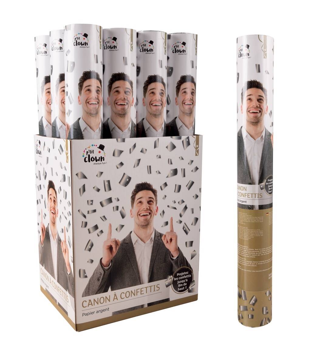 Avec le canon à confettis argent 40 cm de La Maison du Déguisement, transformez chaque instant en moment de fête éclatant !