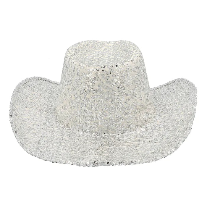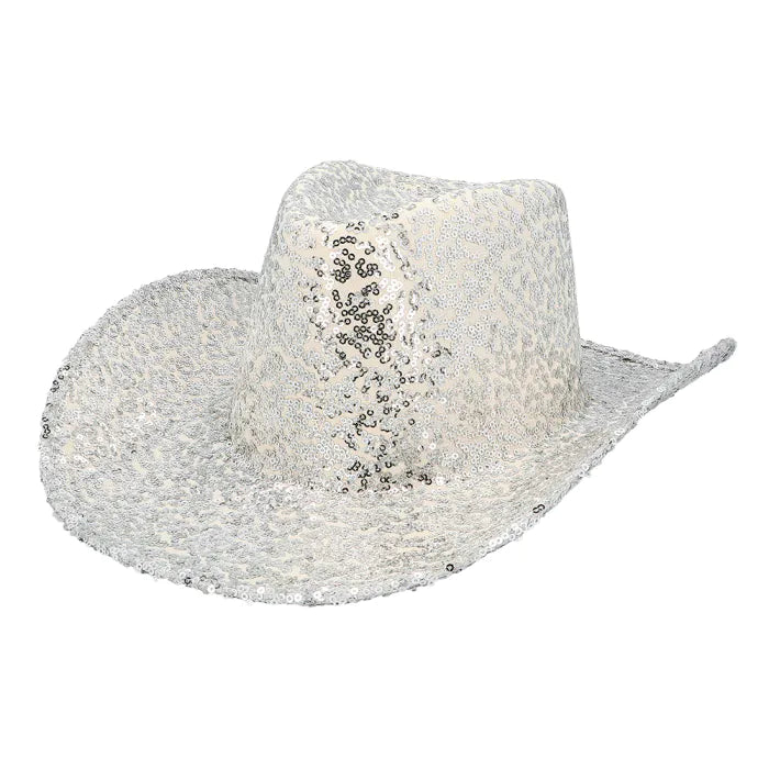 Chapeau cowboy paillettes argent pour un look western scintillant et festif. Parfait pour Halloween, fêtes déguisées ou événements à thème. Achetez-le dès maintenant !