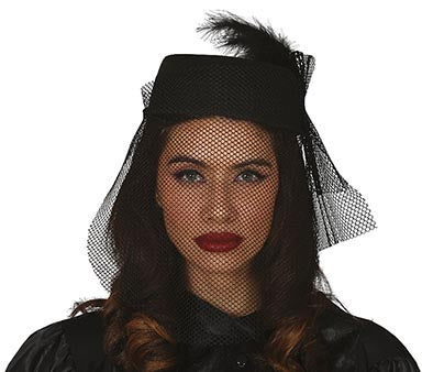 Chapeau noir avec voilette fine intégrée