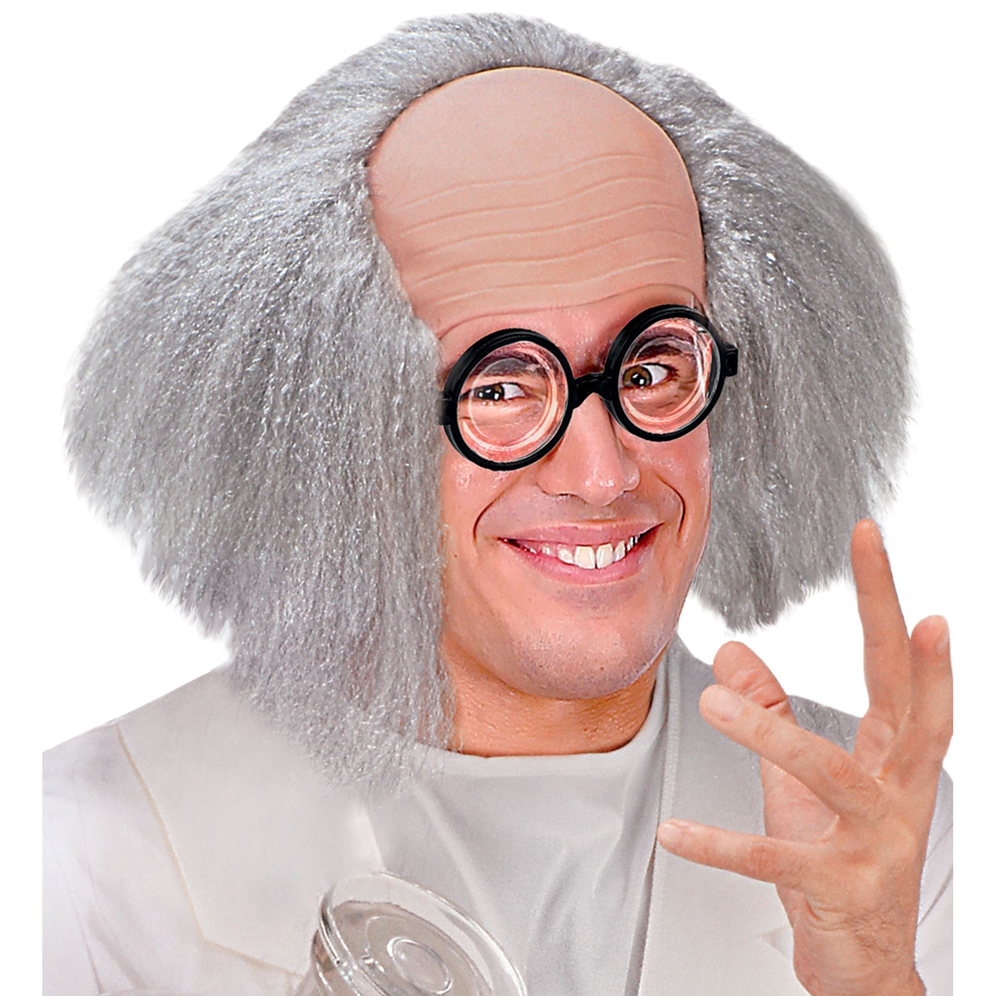 Transformez-vous en professeur génialement déjanté avec cette coiffe Professeur Fou inspirée du célèbre Einstein ! Réaliste et amusante, cette coiffe grise en matière souple et confortable reproduit un crâne chauve entouré de cheveux ébouriffés, pour un effet scientifique un peu fou mais irrésistible.