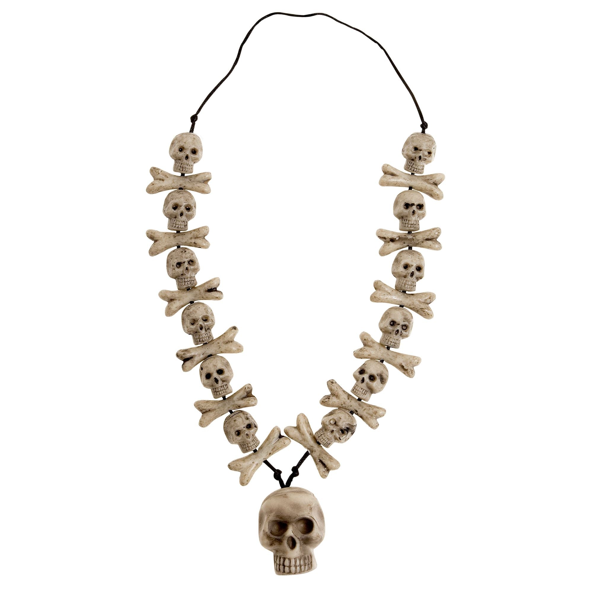 Complétez votre tenue d’Halloween ou votre déguisement de sorcier, faucheur ou zombie avec ce collier de crânes et d’os au style macabre et tribal. Cet accessoire incontournable apporte la touche finale à tout costume terrifiant.