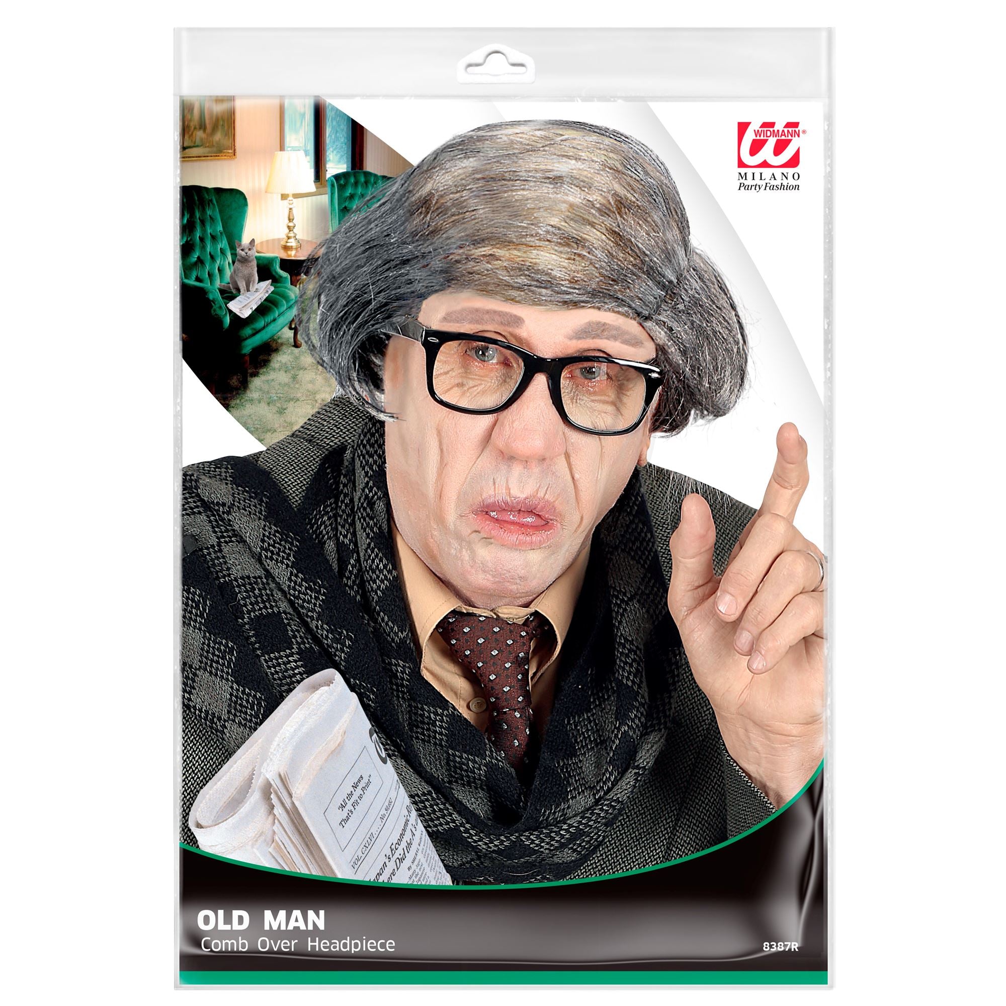 Coiffe en forme de crâne avec cheveux gris synthétiques
