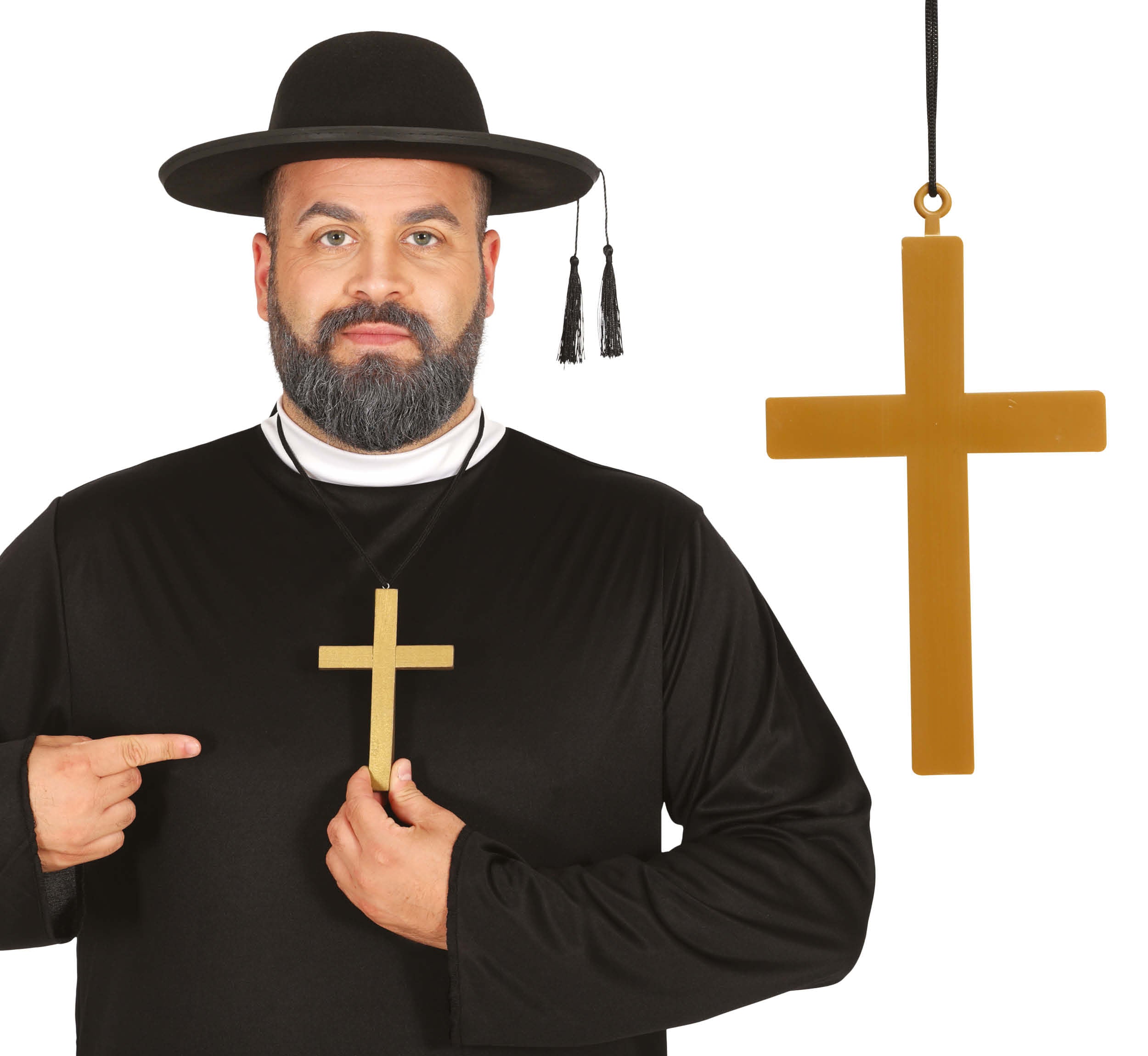 Ajoutez une touche symbolique et élégante à vos déguisements ou tenues à thème avec ce collier à pendentif croix dorée. Fabriqué en plastique léger mais résistant, ce collier mesure 23 cm de long et est suspendu à un cordon noir réglable, assurant un confort optimal et un port facile. Son design simple mais efficace apporte une touche religieuse ou mystique, idéale pour compléter des costumes de moine, prêtre, chevalier ou personnages médiévaux et religieux.