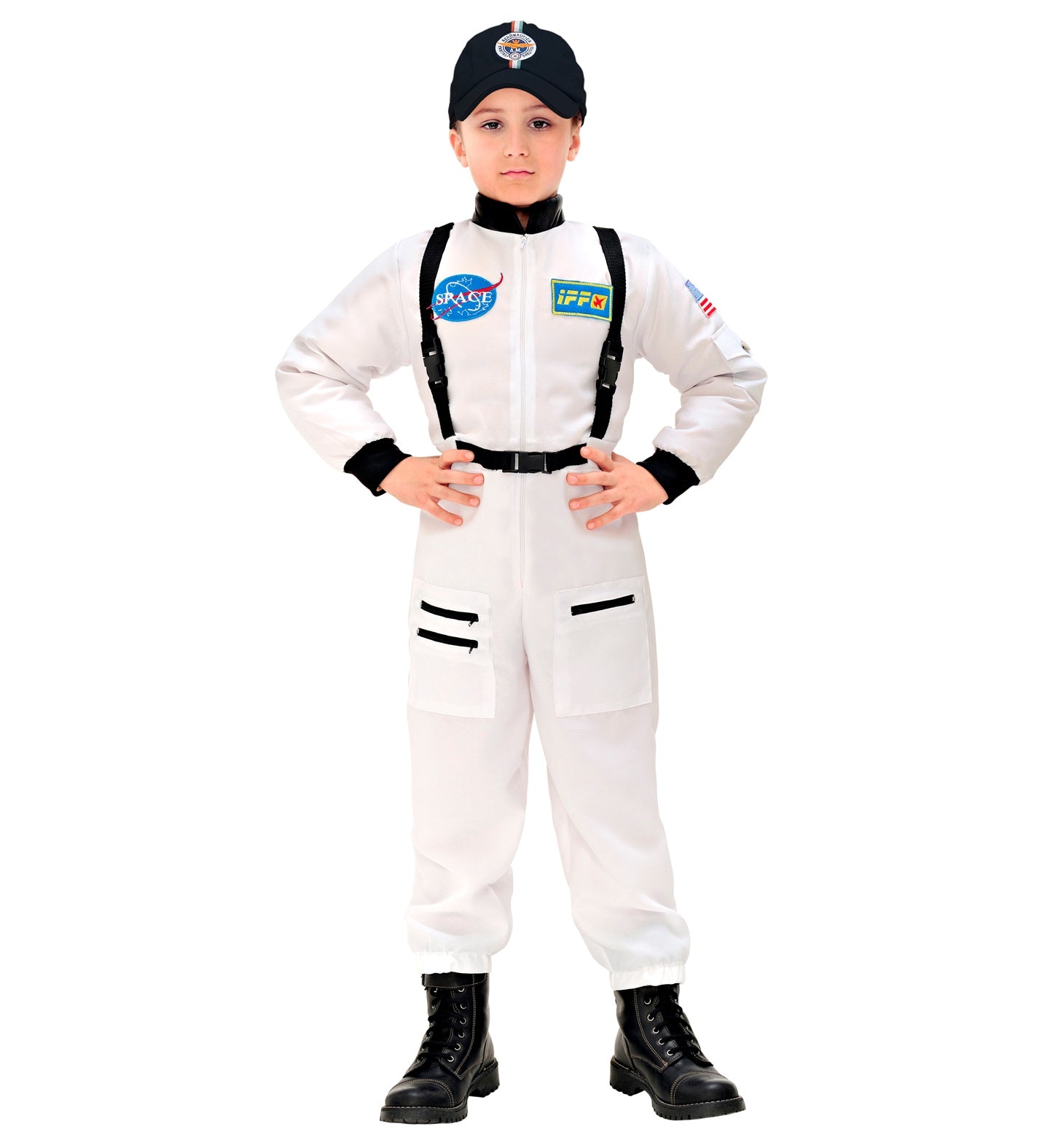 Costume astronaute enfant avec combinaison et écussons. Idéal pour thèmes scientifiques, métiers ou futuristes. Achetez-le maintenant sur notre site web.