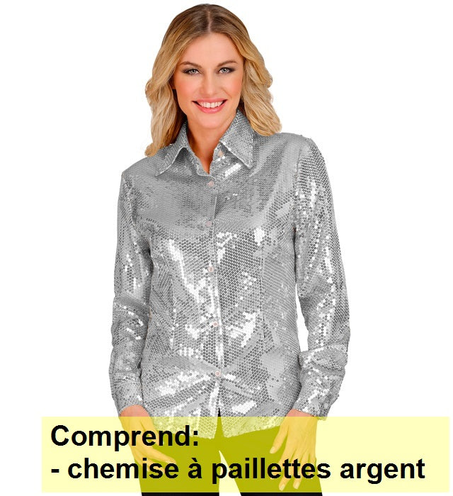 Chemise à sequins femme pour soirées et fêtes à thème. Style disco, coupe élégante et effet scintillant. Achetez-le maintenant sur notre site web.