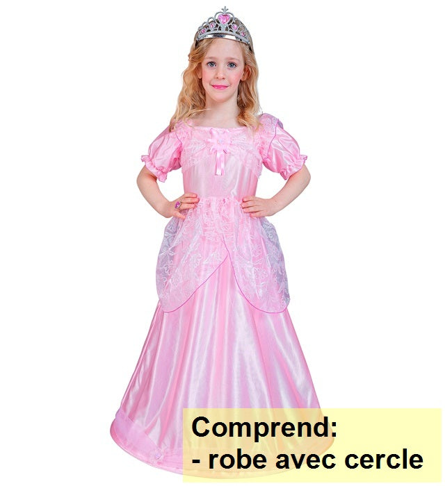 Costume princesse enfant avec robe satinée et cerceau. Idéal pour carnaval, fête et anniversaire. Achetez-le maintenant sur notre site web.