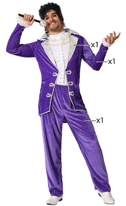 Déguisement Rock Star Violet Adulte Homme Ce costume contient: veste, haut et pantalon. Vous aimez la soul, le gospel et le rock? Si vous avez reconnu cet artiste, alors ce costume violet pour homme de star de Glam Rock est fait pour vous. C'est un costume inspiré des ses meilleurs années, avec une esthétique qui ne passe pas inaperçue. Ce costume comprend une belle veste violette imitation velours avec des détails argentés et une chemise blanche, avec un pantalon assorti violet.