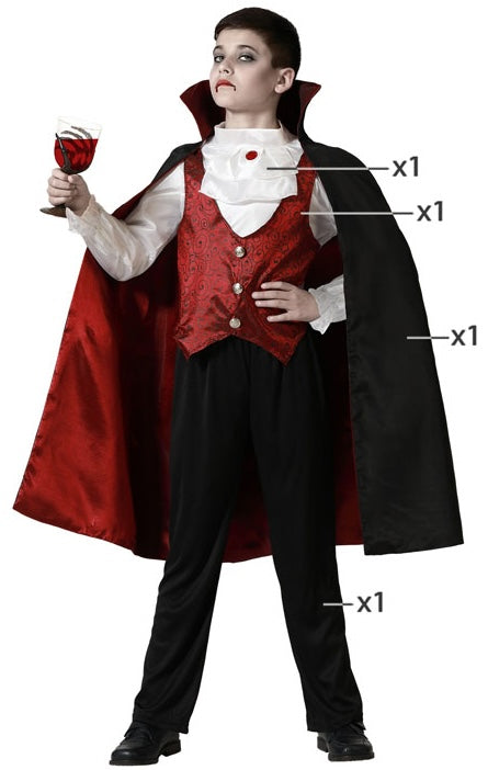Le déguisement se compose d’une chemise avec gilet intégré, d’une cape de vampire à col relevé et d’un pantalon assorti, pour un look digne des plus grands seigneurs des ténèbres. Facile à porter et confortable, il permet à votre enfant de se glisser dans la peau d’un personnage mythique et incontournable d’Halloween.
