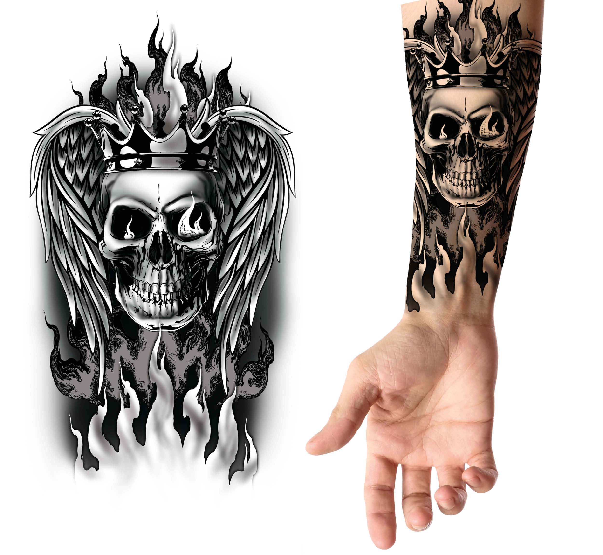 tatouage crâne, tatouage tête de mort, tatouage temporaire, accessoire Halloween, maquillage effrayant, cosplay sombre, tatouage pirate