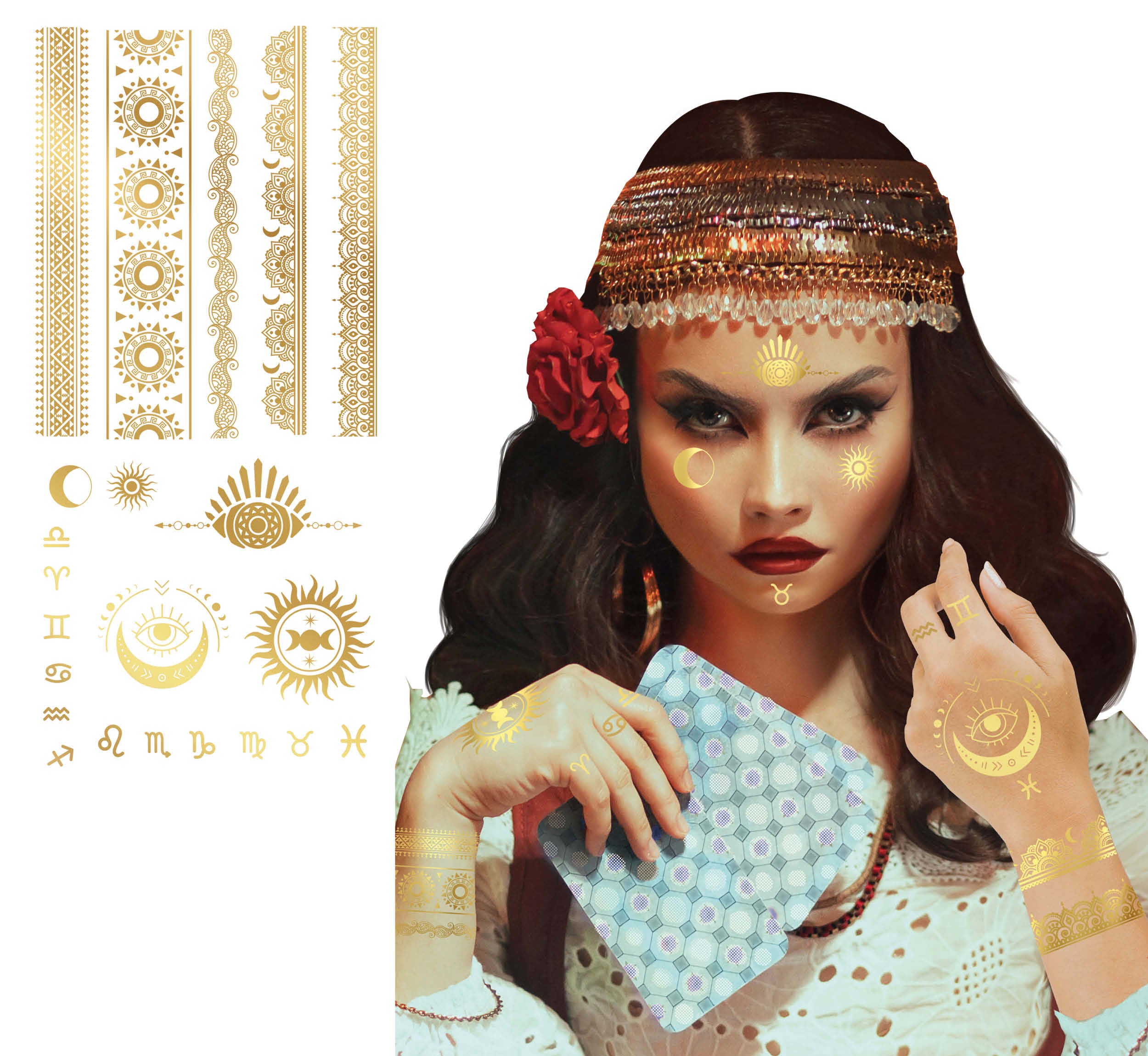 Tatouage temporaire métal or avec motifs orientaux et gitans raffinés