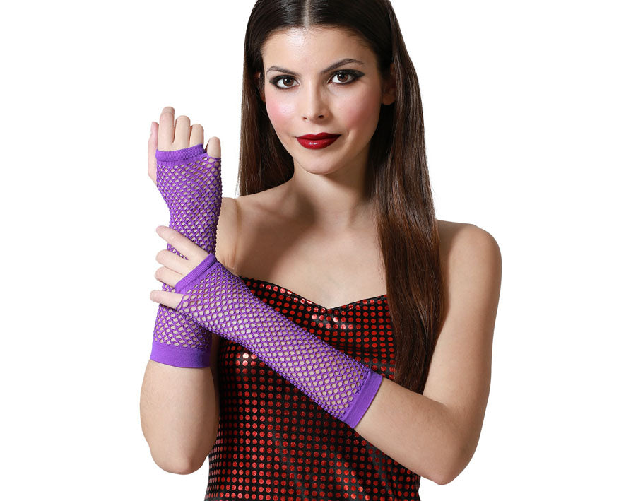 Ajoutez une touche de mystère et de fantaisie à votre tenue avec ces mitaines résille mi-longues violettes ! Parfaites pour accessoiriser un déguisement original ou une tenue de soirée à thème, elles offrent un style rétro inspiré des années 80 tout en restant confortables et modernes.