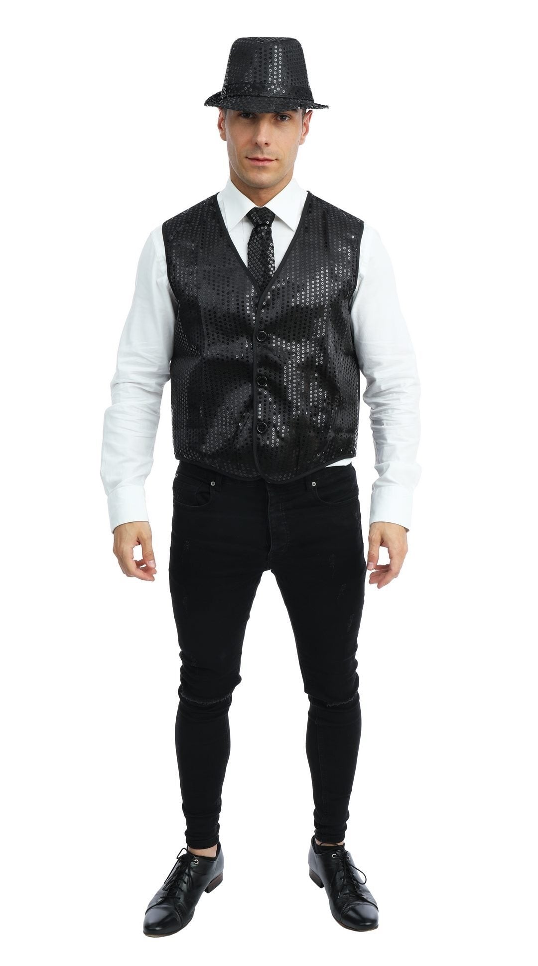 Transformez votre style et brillez de mille feux avec ce gilet à paillettes Noir pour adulte, taille unique, une pièce incontournable pour vos soirées et événements déguisés.