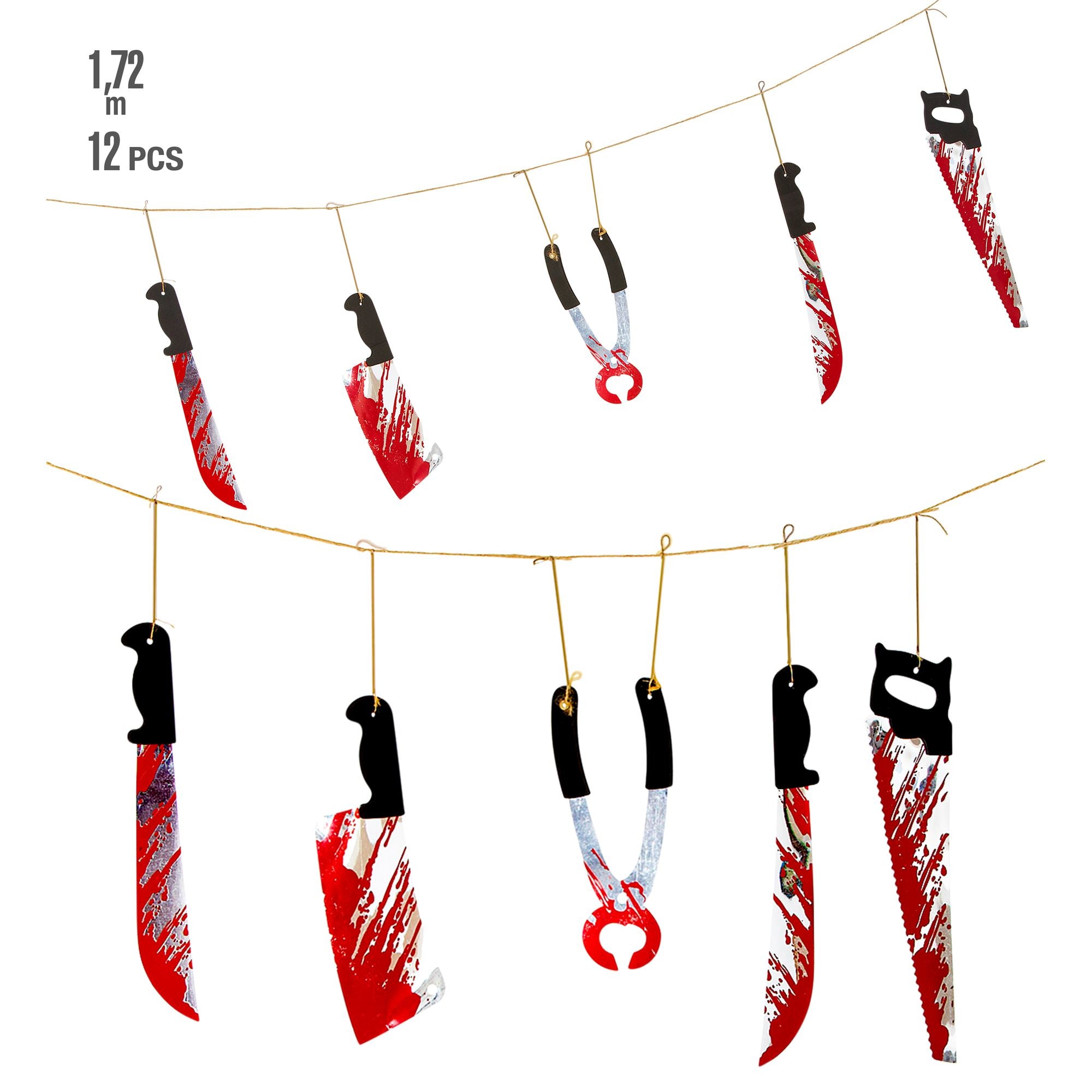 Créez une ambiance terriblement réaliste pour votre fête d’Halloween avec cette guirlande d’outils sanglants métallisés !