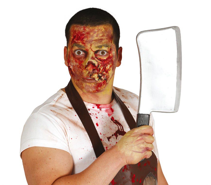 hachoir boucher déguisement, couteau factice halloween, accessoire tueur en série, arme plastique horreur, hachoir zombie déguisement