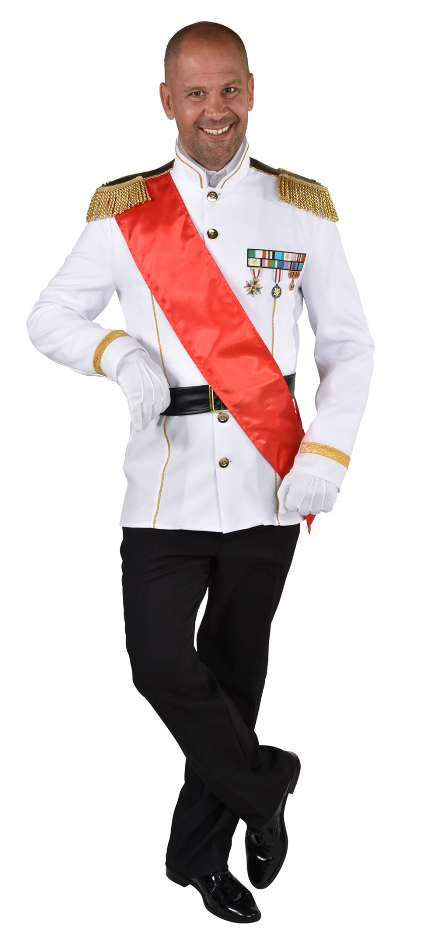 Veste blanche à épaulettes dorées et boutons décoratifs