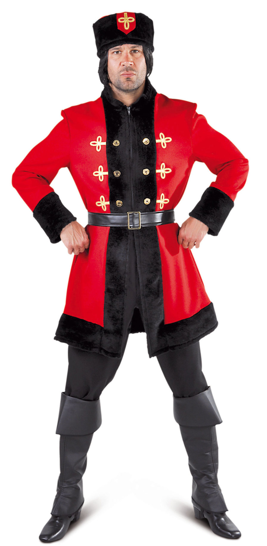 Inspiré des tenues de parade des cosaques, ce déguisement allie sobriété, élégance et caractère. Il incarne la fierté, la force et l’identité culturelle des peuples de l’Est.