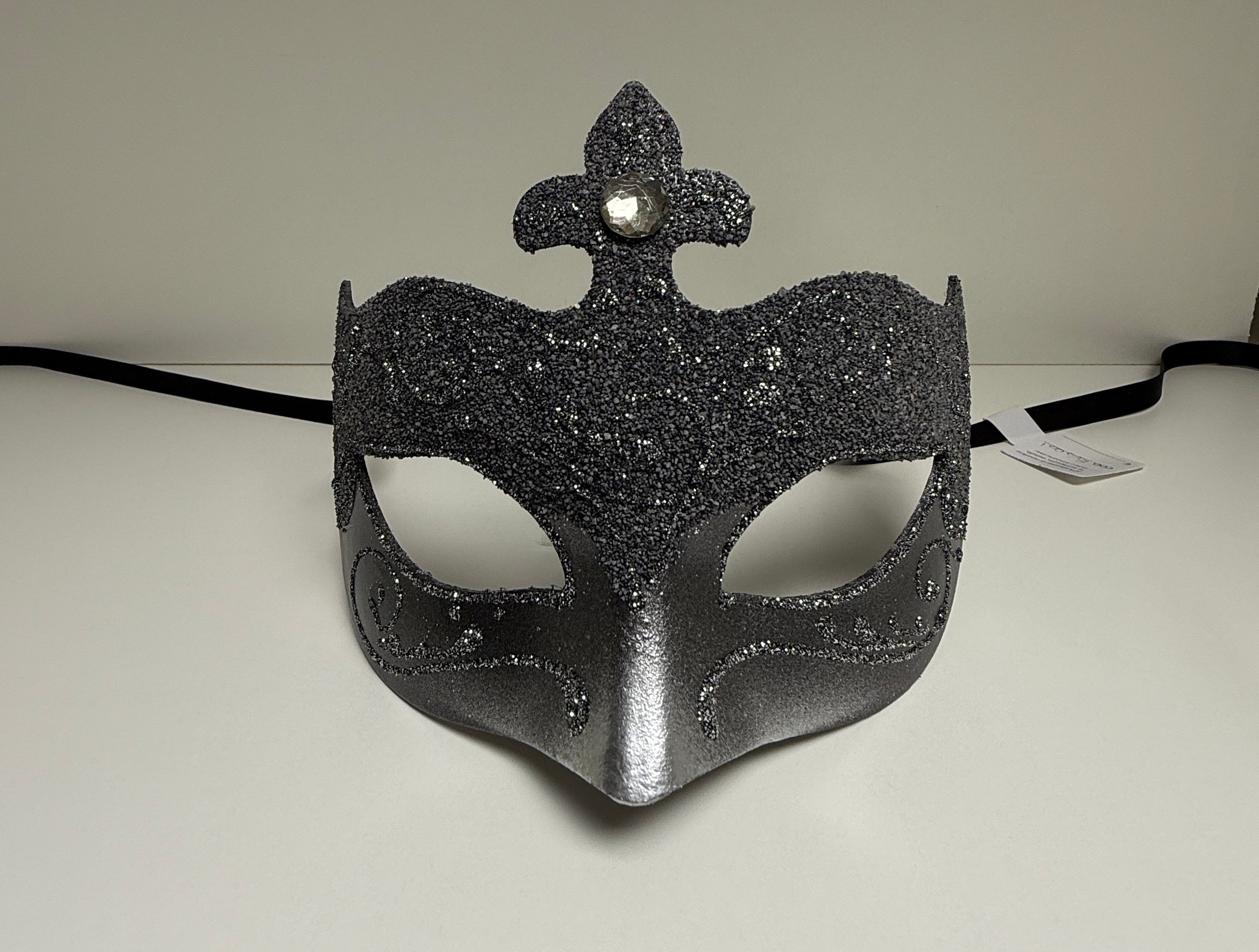 Ce loup vénitien gris et argent incarne l'élégance discrète et la sophistication intemporelle. Le gris doux et raffiné, associé à des ornements argentés scintillants, crée un contraste subtil et lumineux, parfait pour un look à la fois moderne et inspiré de la tradition vénitienne.
