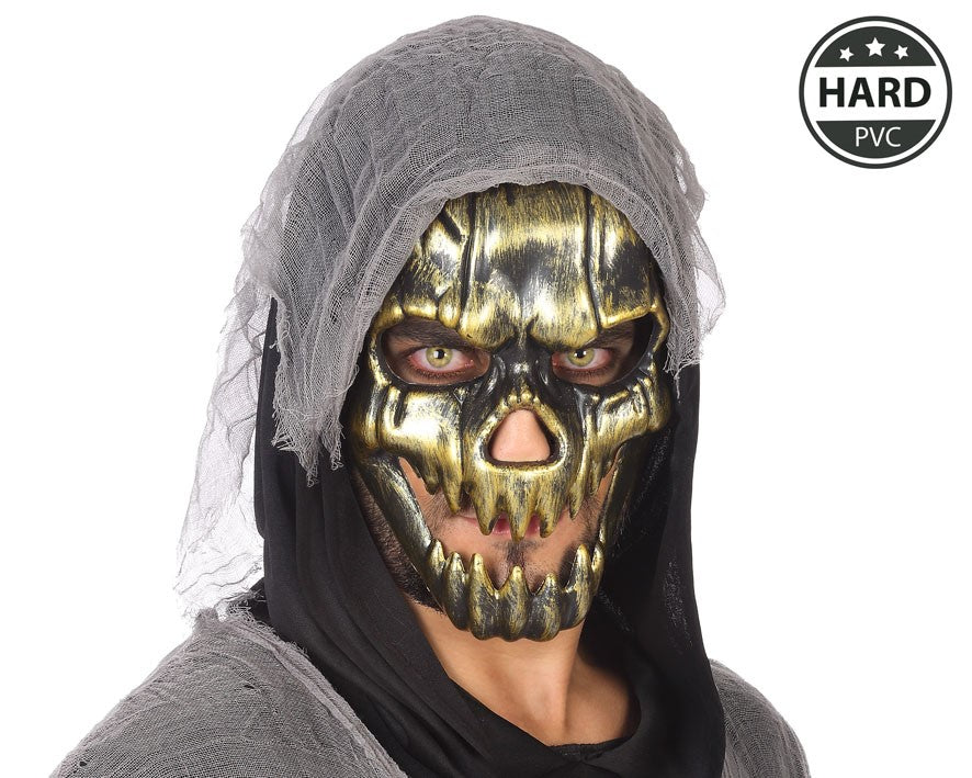 Ajoutez une touche effrayante et brillante à votre déguisement avec ce masque squelette doré incontournable !