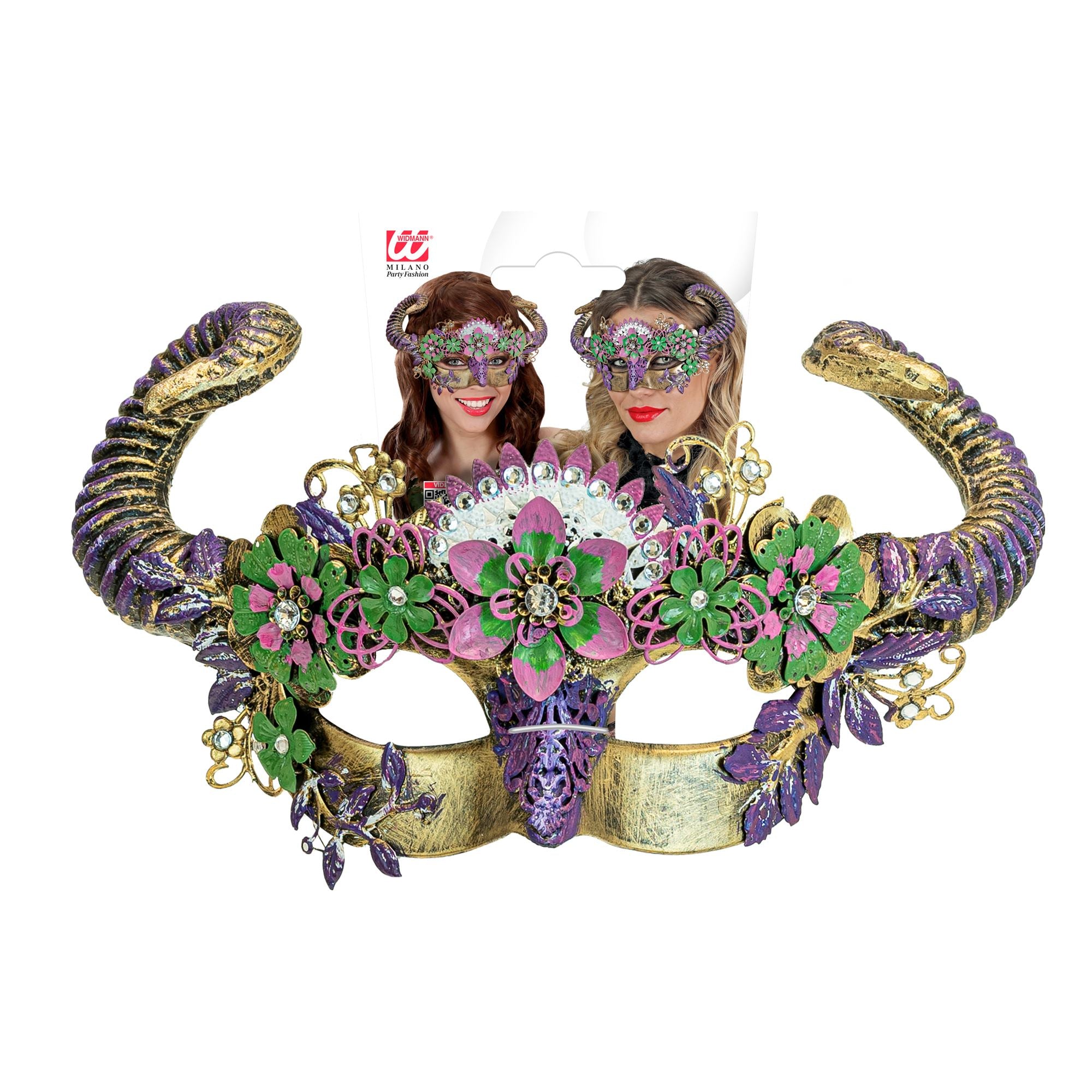 🌸 Masque Théâtre Mouton Violet avec Fleurs – Loup Démon Luxe