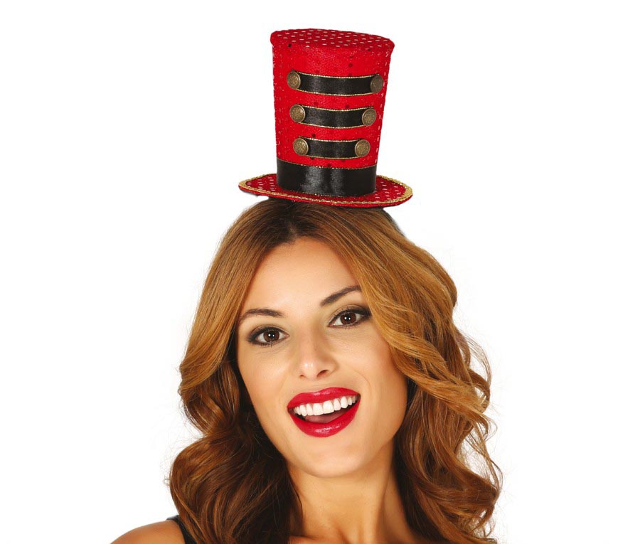 🎩 Mini Chapeau Haut de Forme Majorette Rouge – Serre-Tête Élégant Taille Unique