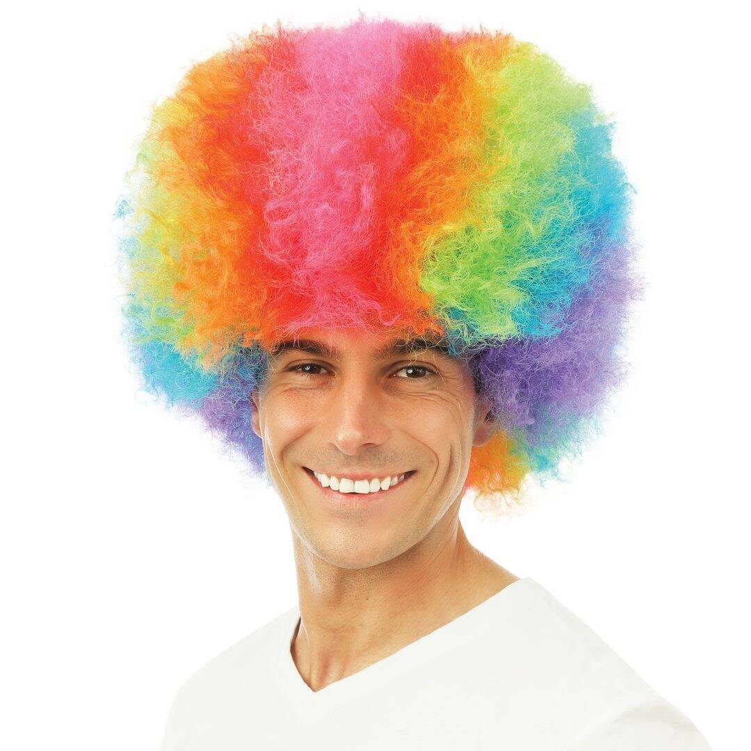Perruque Afro Multicolore : Offrez à votre look un style unique et rétro avec cette perruque afro Multicolore, parfaite pour vos déguisements des années 70 ou 80.