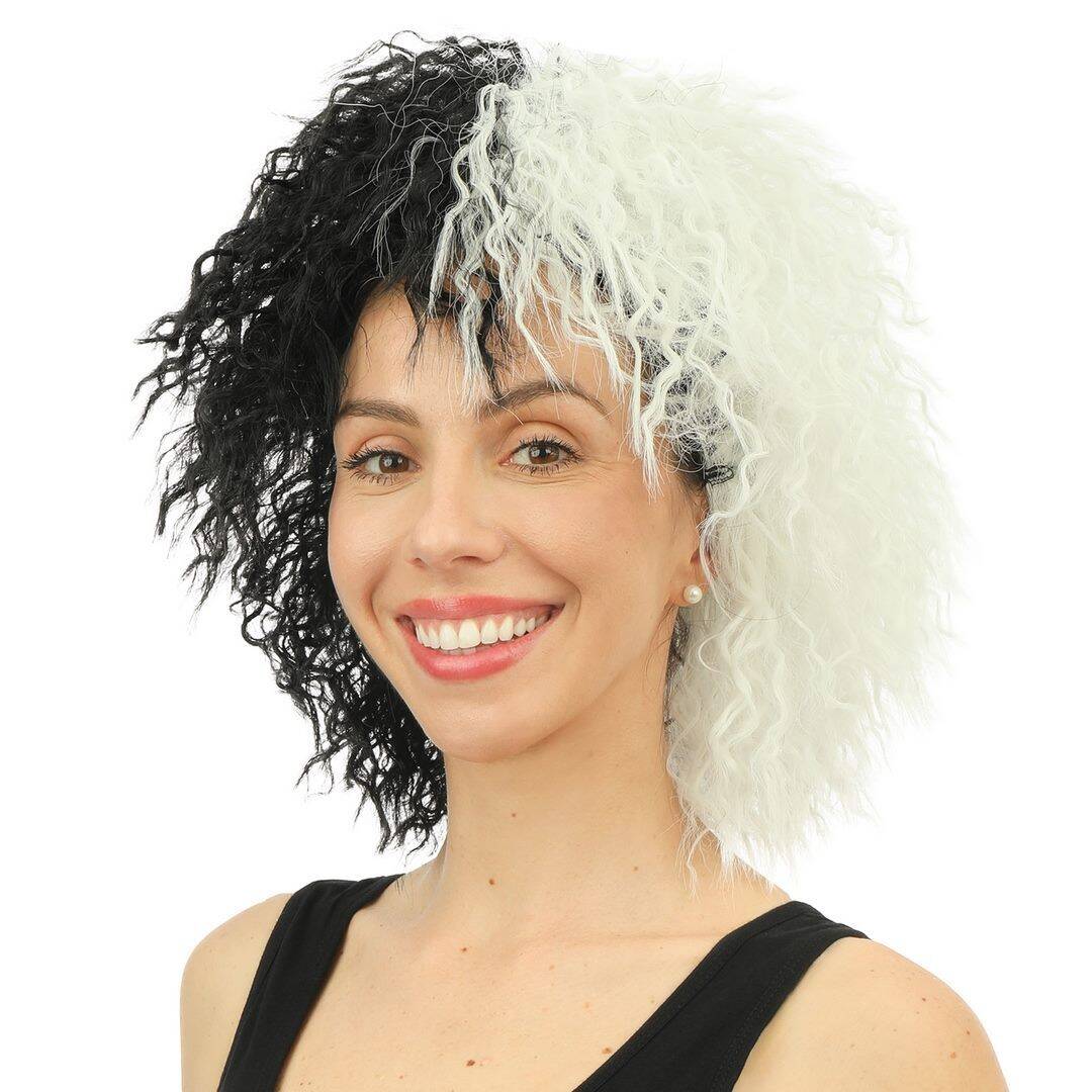 Incarnez la célèbre méchante avec cette perruque Cruella d’enfer à la chevelure iconiquement bicolore, noire d’un côté et blanche de l’autre. Fabriquée en fibres synthétiques de qualité, sa coupe mi-longue offre un volume excentrique et des mèches légèrement ondulées pour reproduire le look spectaculaire du personnage des 101 Dalmatiens. Le calot élastique intégré assure un maintien confortable pour toutes les morphologies, permettant de porter la perruque toute la soirée sans gêne. Idéale pour Halloween, cosplay Disney, spectacles ou soirées à thème, cette perruque complète votre transformation en diva glamour et déjantée.