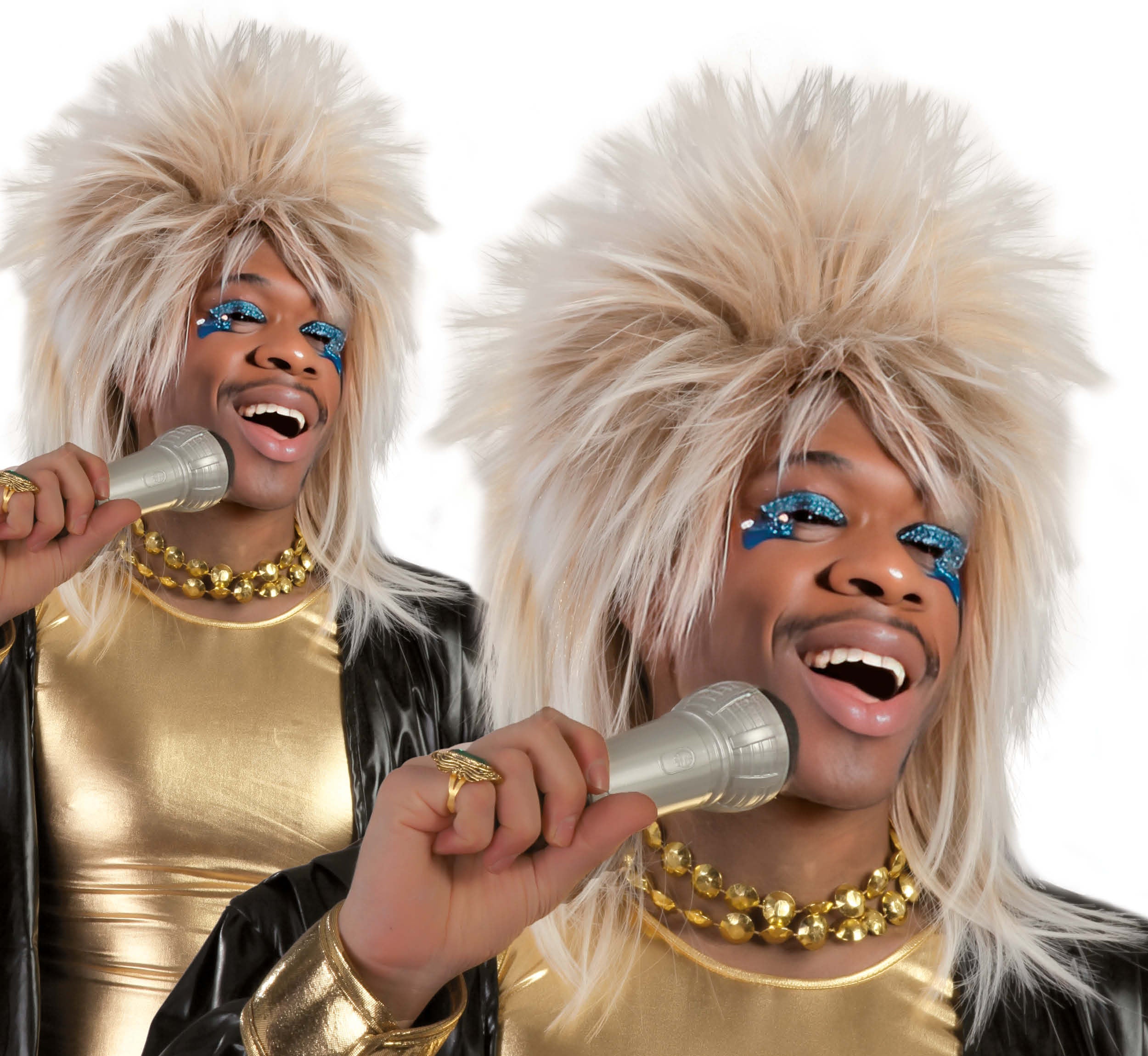 Incarnez une véritable star de la scène avec cette perruque blonde au style rock et disco, idéale pour compléter un costume de popstar, de chanteur rétro ou pour une soirée festive à thème. Avec ses mèches volumineuses et son allure dynamique, elle apporte instantanément un look spectaculaire et lumineux.