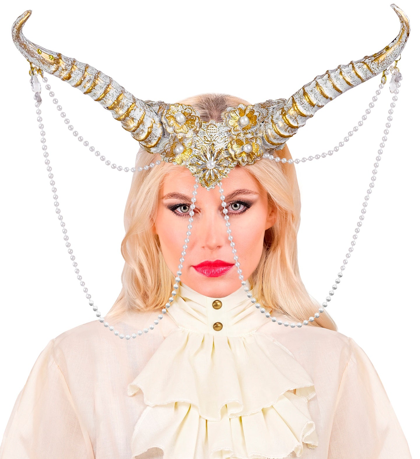 Serre-tête à cornes blanches, orné de perles décoratives