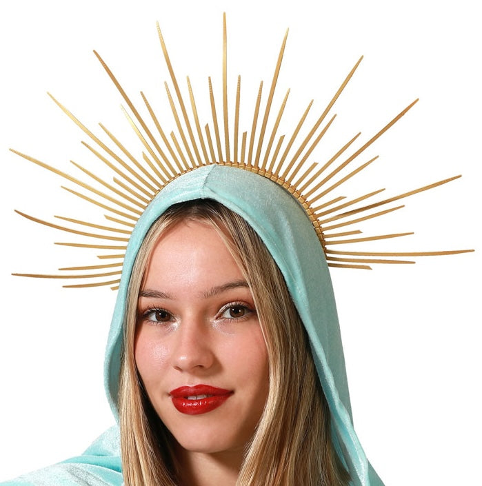 Apportez une touche majestueuse et lumineuse à votre déguisement avec ce serre-tête doré en forme de soleil, idéal pour un look divin ou céleste. Léger et confortable, il se fixe facilement sur la tête et complète parfaitement un costume de déesse, ange ou personnage mythologique.