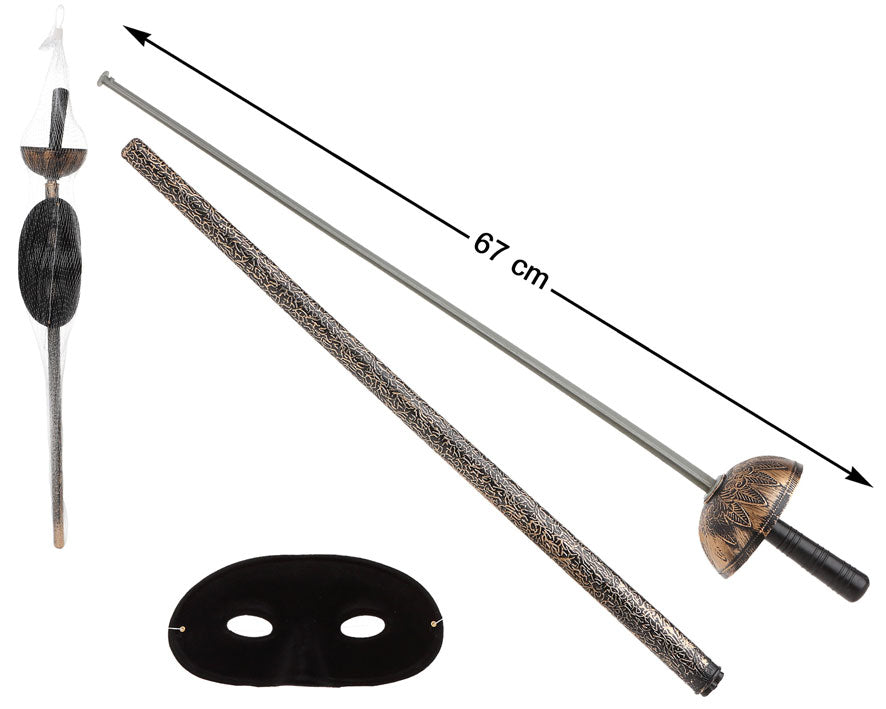 Incarnez le légendaire défenseur des opprimés avec ce set Zorro complet, comprenant une épée fleuret légère et un loup noir mystérieux. L’accessoire parfait pour donner vie à votre déguisement de héros masqué !