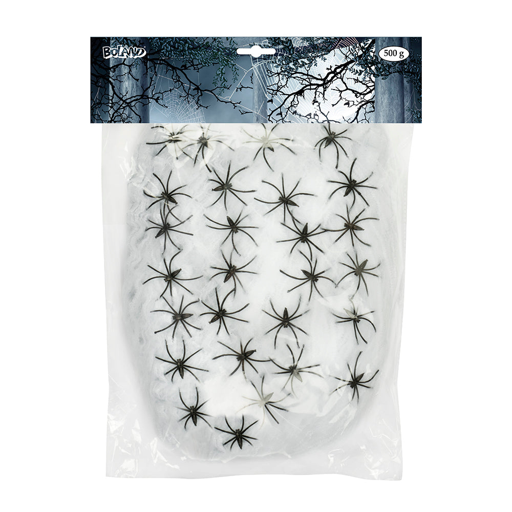 Créez une atmosphère glaçante avec cette toile d’araignée blanche géante de 500 g, fournie avec 25 araignées décoratives. Grâce à sa grande quantité et sa texture filandreuse ultra-réaliste, elle permet de recouvrir de vastes surfaces et de métamorphoser instantanément votre espace en véritable maison hantée.